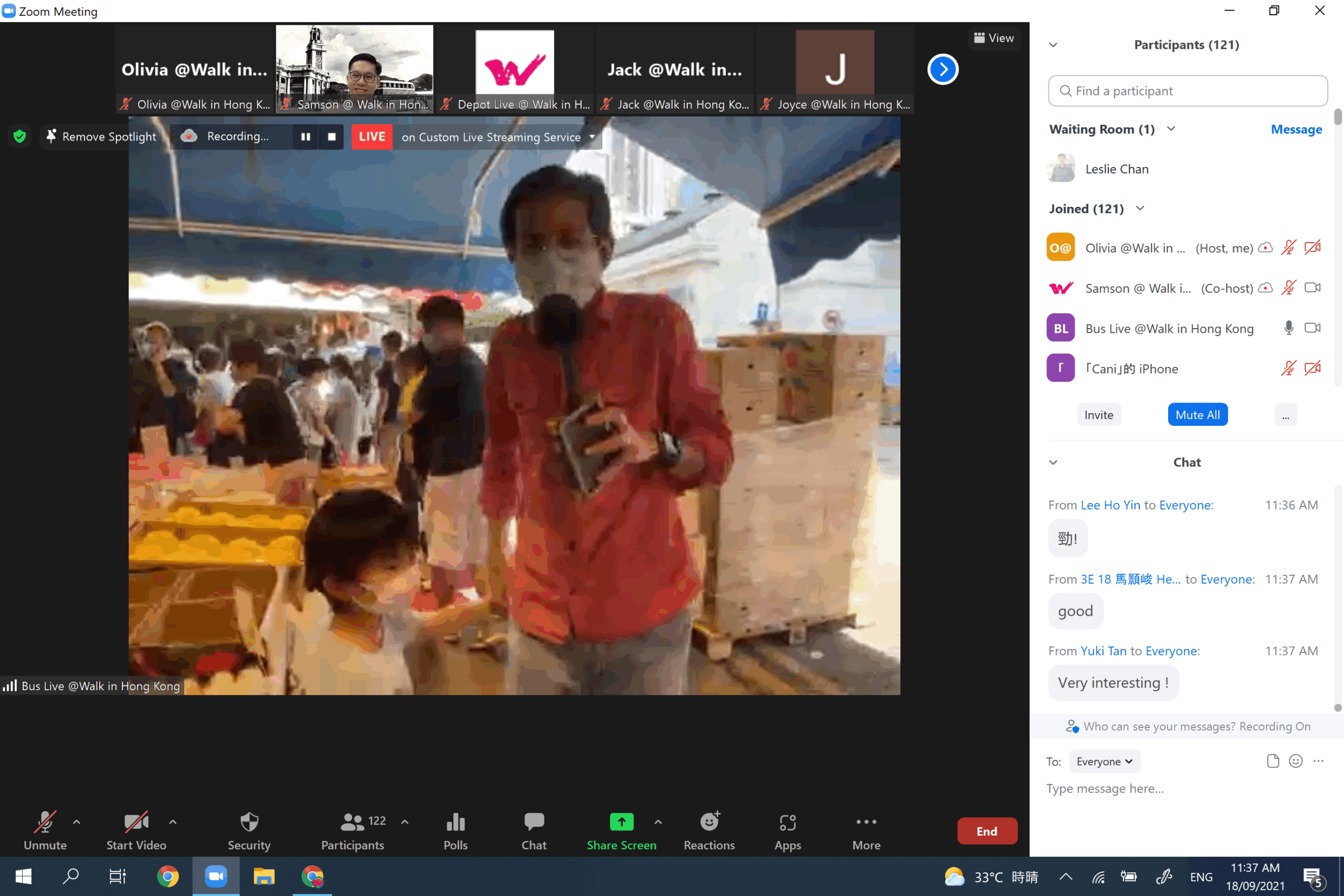 The “Walk in Time: A Journey through The History of Kowloon” was jointly presented by KMB and Walk in Hong Kong in order to celebrate the 100th anniversary of bus services in Kowloon. By taking route 6 from Tsim Sha Tsui to Sham Shui Po in a live broadcast, the audience were able to experience the daily life of Hong Kong citizens in the 1920s-1950s. At the same time, we also had a live stream from KMB’s depot in Kowloon Bay to reveal the hidden stories from day-to-day bus operation. Apart from the Zoom broadcast, the event was also live streamed on Facebook, allowing more than 200 people with a keen interest in buses and history to enjoy the journey.